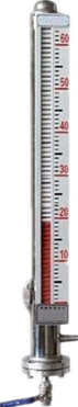 磁翻板液位計(jì)又稱磁浮子液位計(jì),是目前**使用的液位測(cè)量裝置之一。磁性翻板液位計(jì)采用磁性浮子作為測(cè)量元件。磁浮子總是浮在測(cè)量管中的液位上,并隨容器中液位的變化而變化。同時(shí),驅(qū)動(dòng)浮子中的磁鋼,通過(guò)磁力聯(lián)軸器翻轉(zhuǎn)綁定在測(cè)量管表面指示器中的磁性翻板,從而指示容器中的液位