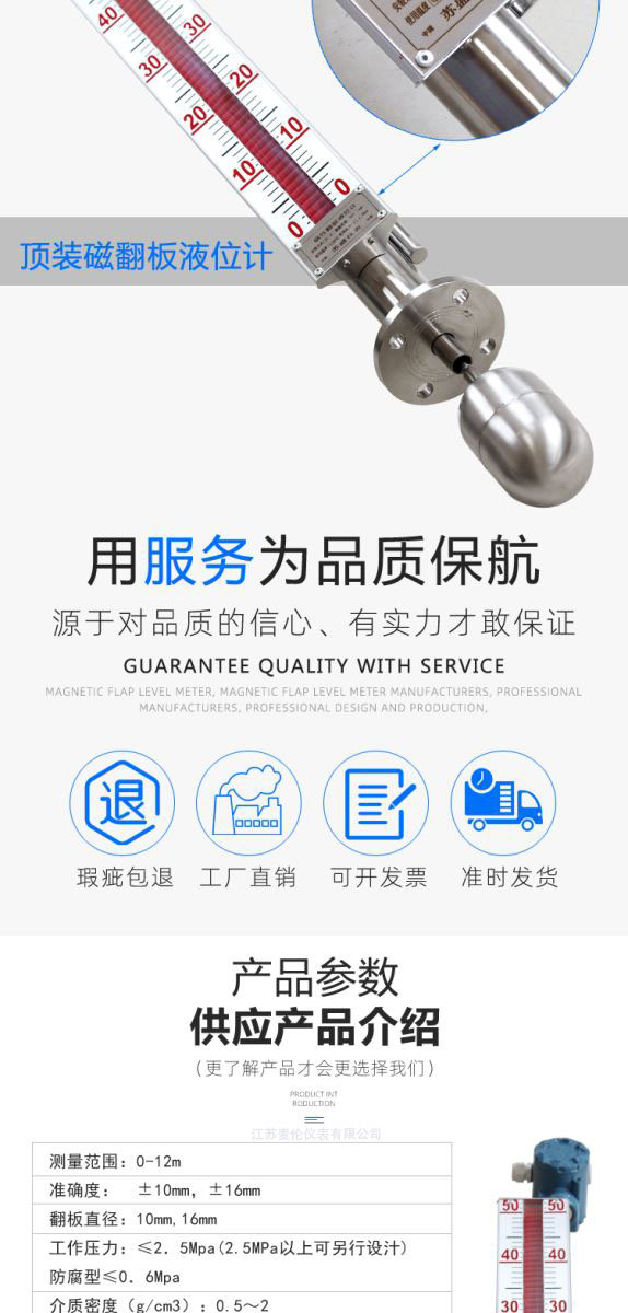 磁翻板液位計(jì)作為一種使用頻率*高的液位計(jì),那么這種液位計(jì)的種類(lèi)究竟有哪些呢?今天就讓小編給大家介紹一下,如何來(lái)正確的選擇適合的磁翻板液位計(jì)。磁翻板液位計(jì)是一種機(jī)械式的液位計(jì),它的測(cè)量原理其實(shí)是非常簡(jiǎn)單的,就是根據(jù)的密度做出相應(yīng)大小的浮球,來(lái)上下浮動(dòng),連接外面的翻板箱,來(lái)實(shí)現(xiàn)在現(xiàn)場(chǎng)觀察到準(zhǔn)確液位的目的。