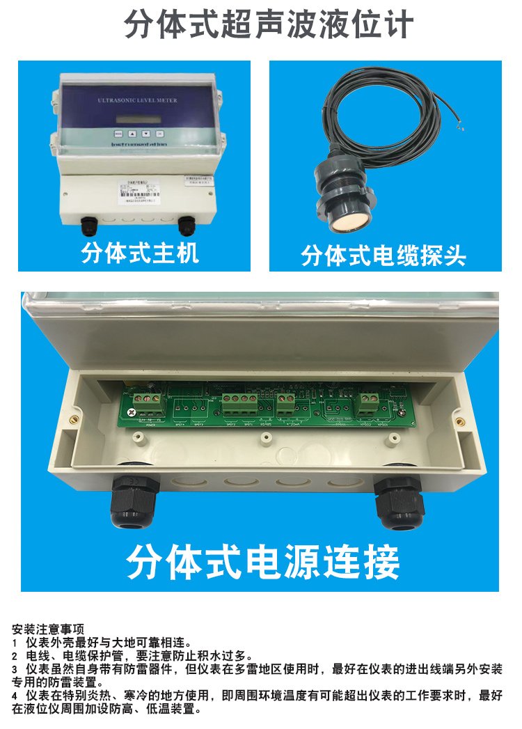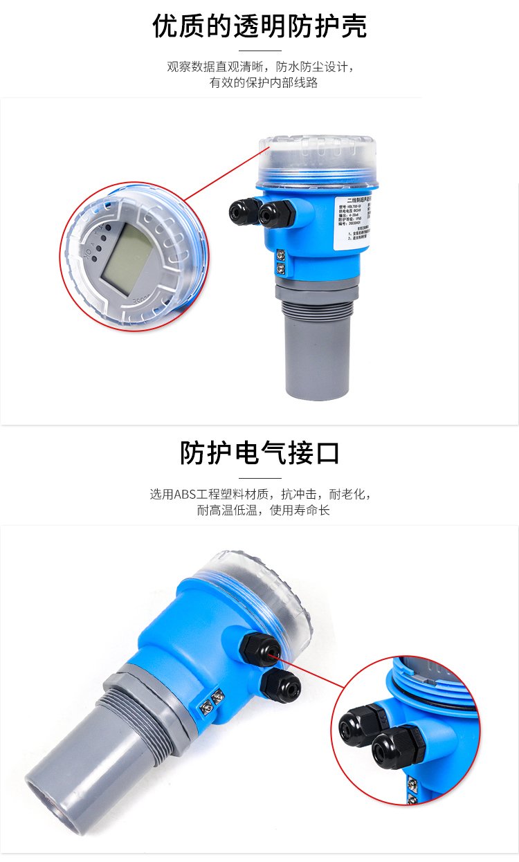 從而影響測量精度;如有必要,可增加波導(dǎo)管,其長度可與液位一樣低。應(yīng)確保管內(nèi)外液位能自由同步升降,內(nèi)壁應(yīng)光滑;在有水蒸氣的場合,盡量不要使用超聲波液位計。因為如果有蒸汽,很容易在探頭表面形成水滴,這將影響儀器的正常測量;露天安裝時安裝遮陽板(雨罩)。