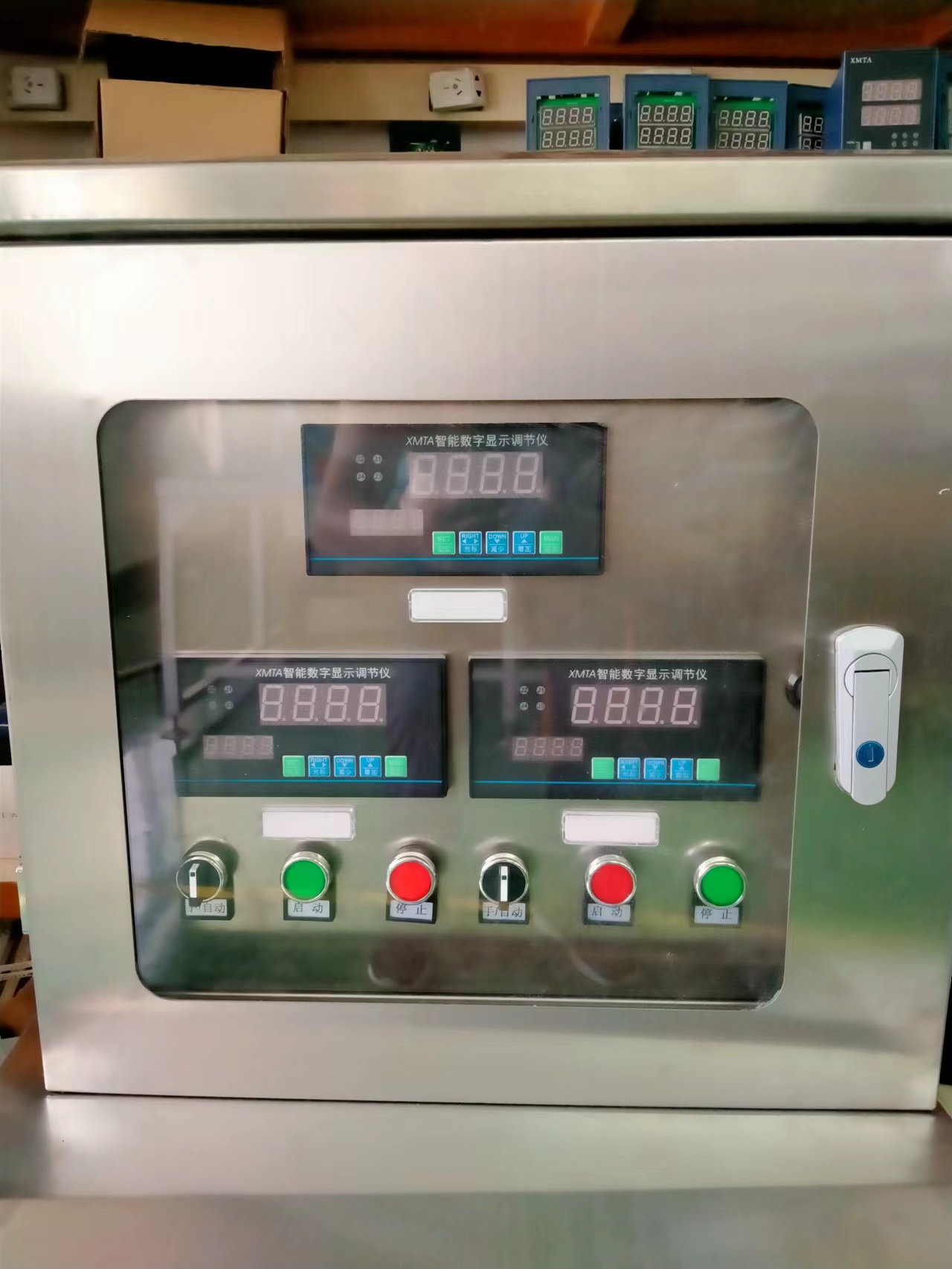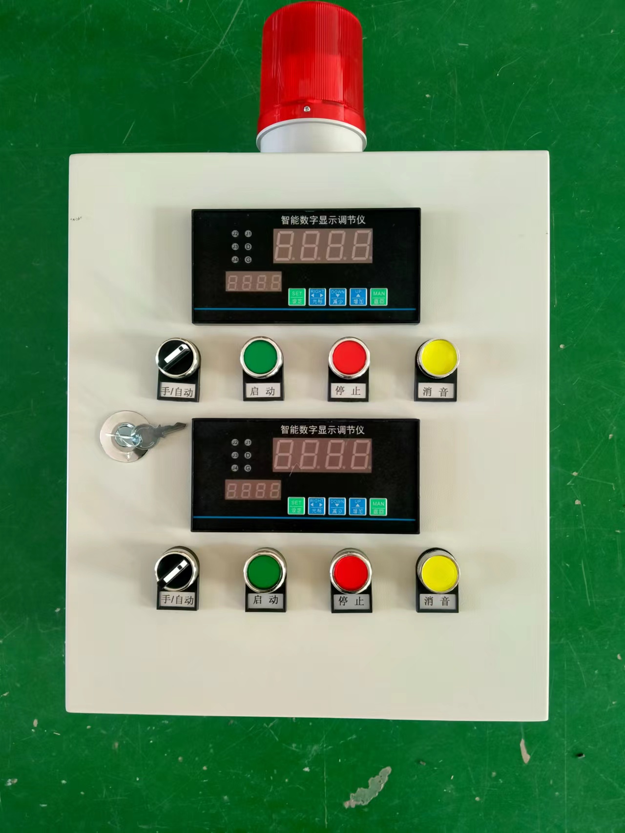 控制儀表箱:智能數字顯示調節儀表,可適時顯示被測液體的液位高度,設定水箱水位的上、下限報警點??刂葡涑叽纾?00×400×200mm(寬×高×厚)。此儀表控制箱可固定安裝在控制室或值班室的墻上。(液位變送器與此儀表箱的距離可達1000米)