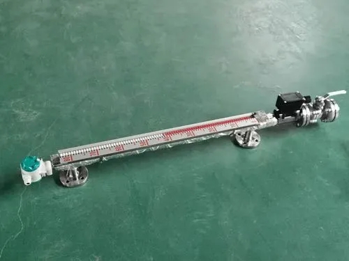 控制型在液位計(jì)的基礎(chǔ)上增加了磁控開關(guān),可在液位監(jiān)控的同時對液位進(jìn)行控制或報(bào)警。遠(yuǎn)傳型是在柱液位計(jì)的基礎(chǔ)上增加了4~20mA的傳輸傳感器。同時將液位的變化通過傳輸傳感器、電纜和儀表傳輸?shù)娇刂剖遥瑢?shí)現(xiàn)遠(yuǎn)程監(jiān)控和控制。