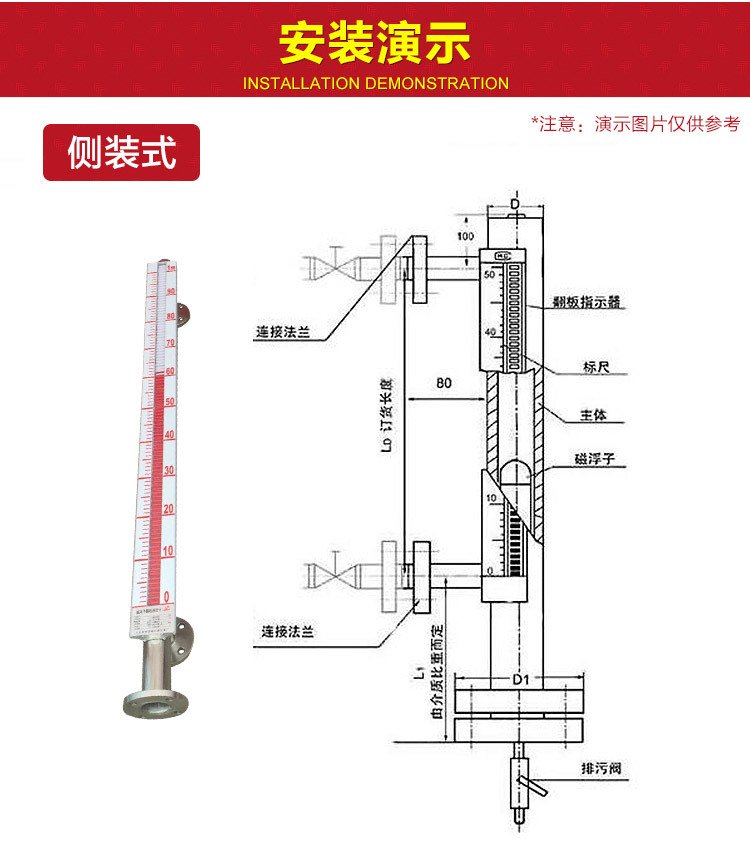 JSMLp-11A標準磁翻板液位計:316L不銹鋼,適用于大多數腐蝕性液體的測量。