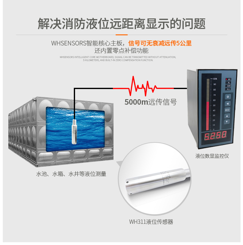 江蘇麥倫儀表有限公司專門針對(duì)上述要求開發(fā)出一款液位實(shí)時(shí)監(jiān)測系統(tǒng),其中Wspan11水位探頭直接投入安裝到消防水池或者水箱的底部,WH6液位專用顯示器安裝在消防控制中心就可以實(shí)時(shí)監(jiān)測消防水箱水池的實(shí)時(shí)水位,并帶有高低液位報(bào)警功能,確保消防水箱在滿水位運(yùn)行。