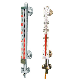 在桶槽的外側裝置延伸旁路管,由旁路管外加裝液位指示器,將裝有磁鐵的浮球放進旁路管內,因磁性色片內裝著與浮球磁性相反之磁鐵,所以當浮球上升時會吸引磁性色片翻動,磁性色片顏色會由白色翻為紅色,以指示實際液位高度。