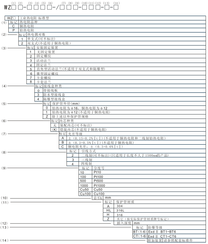 五、熱電阻型號