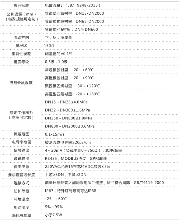 5、測量管內無阻流部件,無壓損,直管段要求低。對漿液測量有獨特的適應性;