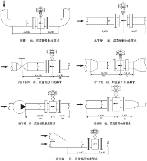 (5)流量計安裝場所應避免有強磁場及強振動源,如管道振動大,在流量計兩邊應有固定管道的支座。