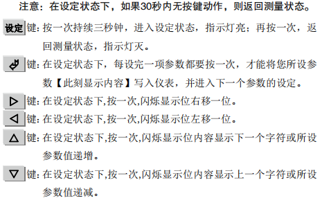 共有六個使用鍵,其中有測量狀態使用鍵和設定狀態使用鍵, 選用優質薄膜觸摸式鍵盤,按鍵時伴有清脆的蜂音。