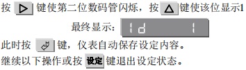小數點位置的提示符是:d,在設定顯示范圍前,先設定小數點位置。小數點位置設定代碼范圍是0~3,其含義是0對應個位〔第六位數碼管〕,1對應十位〔第五位數碼管〕,2對應百位〔第四位數碼管〕,3對應千位〔第三位數碼管〕。從例二中我們看到顯示范圍是-100.0~100.0℃,小數點位置在十位上,也就是說在第五位數碼管上顯示,其對應代碼是1。因此按以下操作進行小數點位置設定。