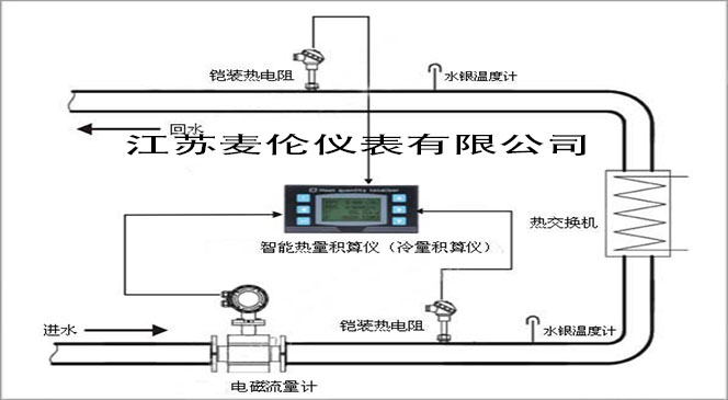 冷凍水冷量計量系統(tǒng)安裝示意圖;空調(diào)用的冷凍水,水溫等級一般為5-6℃,冷媒體為淡水。低于5℃的供冷,則用鹽水或其它冷媒體。淡水冷凍水的冷量計量方法多采用如下圖所示的基于質(zhì)量流量的計量的方法。