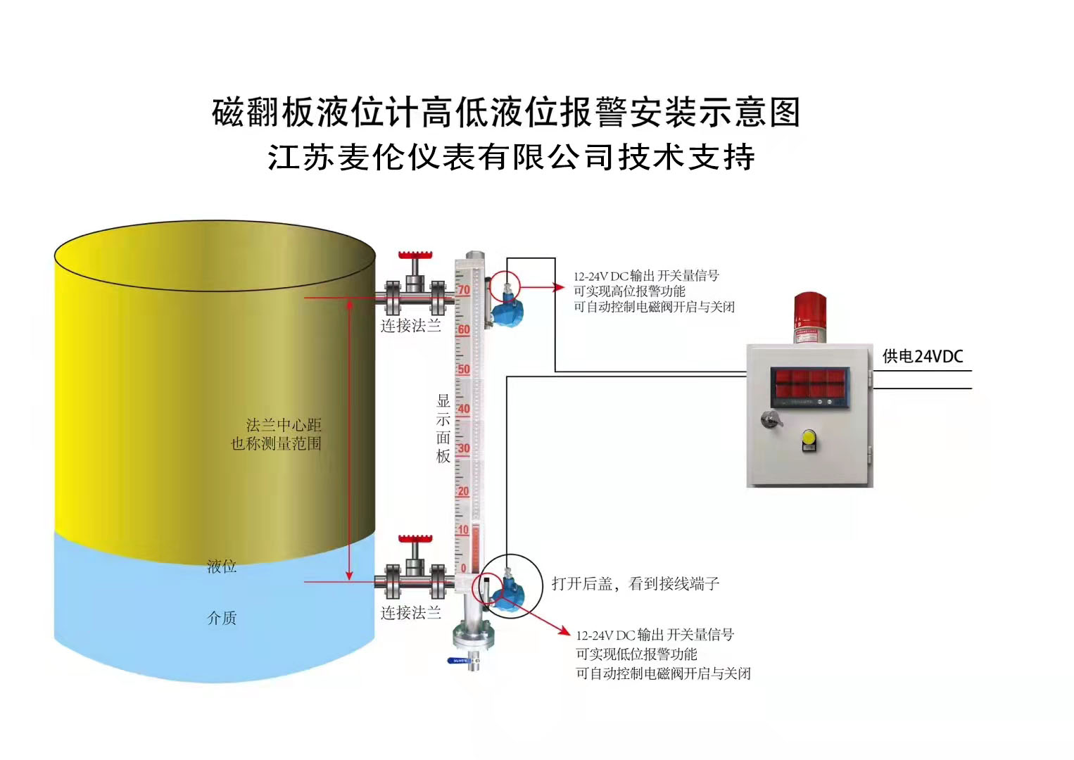 磁翻板液位計的中心距必須為***1m。如果制造中心距有誤差,后果將非常嚴重,這將導致現場安裝時連接失敗;法蘭選擇:首先,法蘭尺寸應與用戶法蘭尺寸一致,壓力等級應一致;磁性翻板液位計工作原理:磁性翻板液位;主要基于連接器和磁性聯軸器的原理,實現液位的實時測量和顯示。